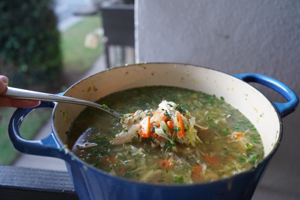 Chicken noodle soup is always a favorite in all households. Wanting something similar, I went with more herbs and cabbage… I love cabbage. I also wanted the soup to be Mediterranean and anti-inflammatory. The bone broth is for gut healing. Dill, cabbage, olive oil for the Mediterranean vibe. Chicken, for the protein-rich. All the rest just makes it so amazing. It wasn’t hard to think up this recipe!