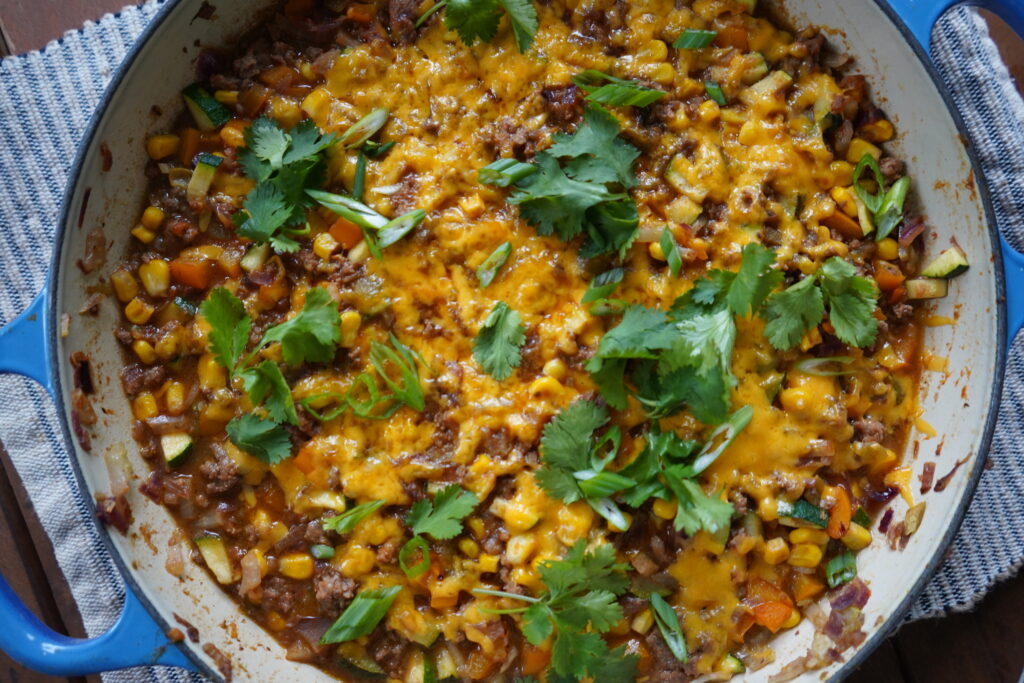 Looking for a low-carb dinner that leaves you satiated and happy. This High-Protein, Low-Carb Enchilada Skillet is for you! Packed with vegetables and grass-fed ground beef.